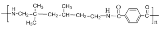 英文名:Semi-aromatic nylon,又稱無(wú)定形聚酰胺,化學(xué)名稱為:聚對(duì)苯二甲酰三甲基己二胺。其分子結(jié)構(gòu)式為: