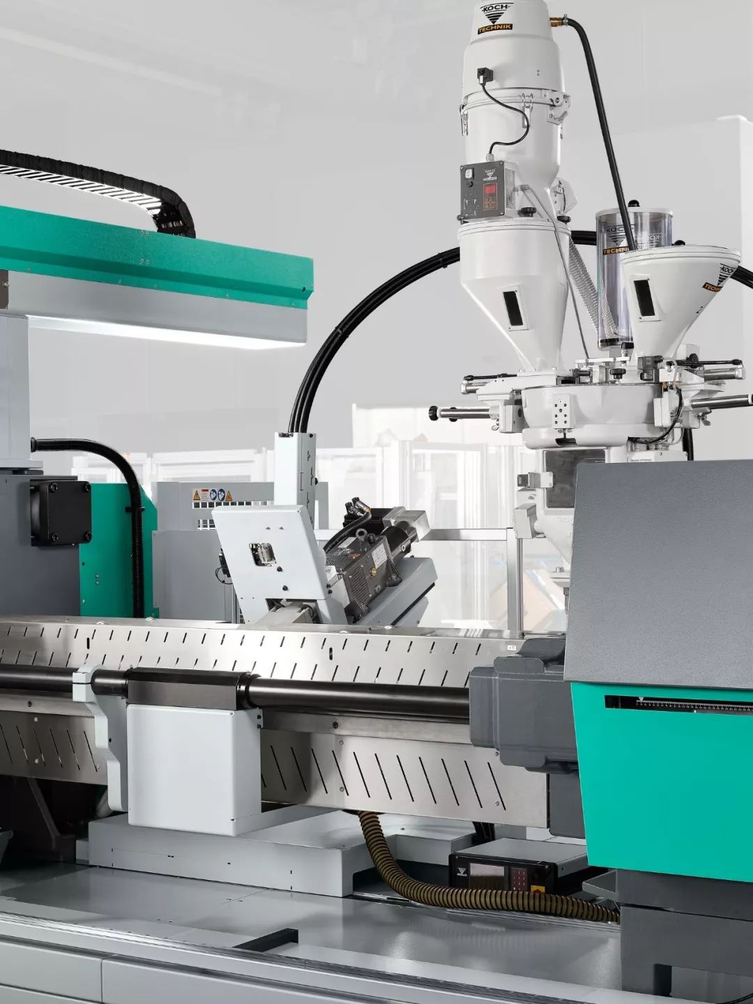 固定在注射單元上的FDC 裝置包括集成了切割裝置的側(cè)喂料器、一個適配的氣缸和一種特殊的螺桿結構。